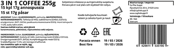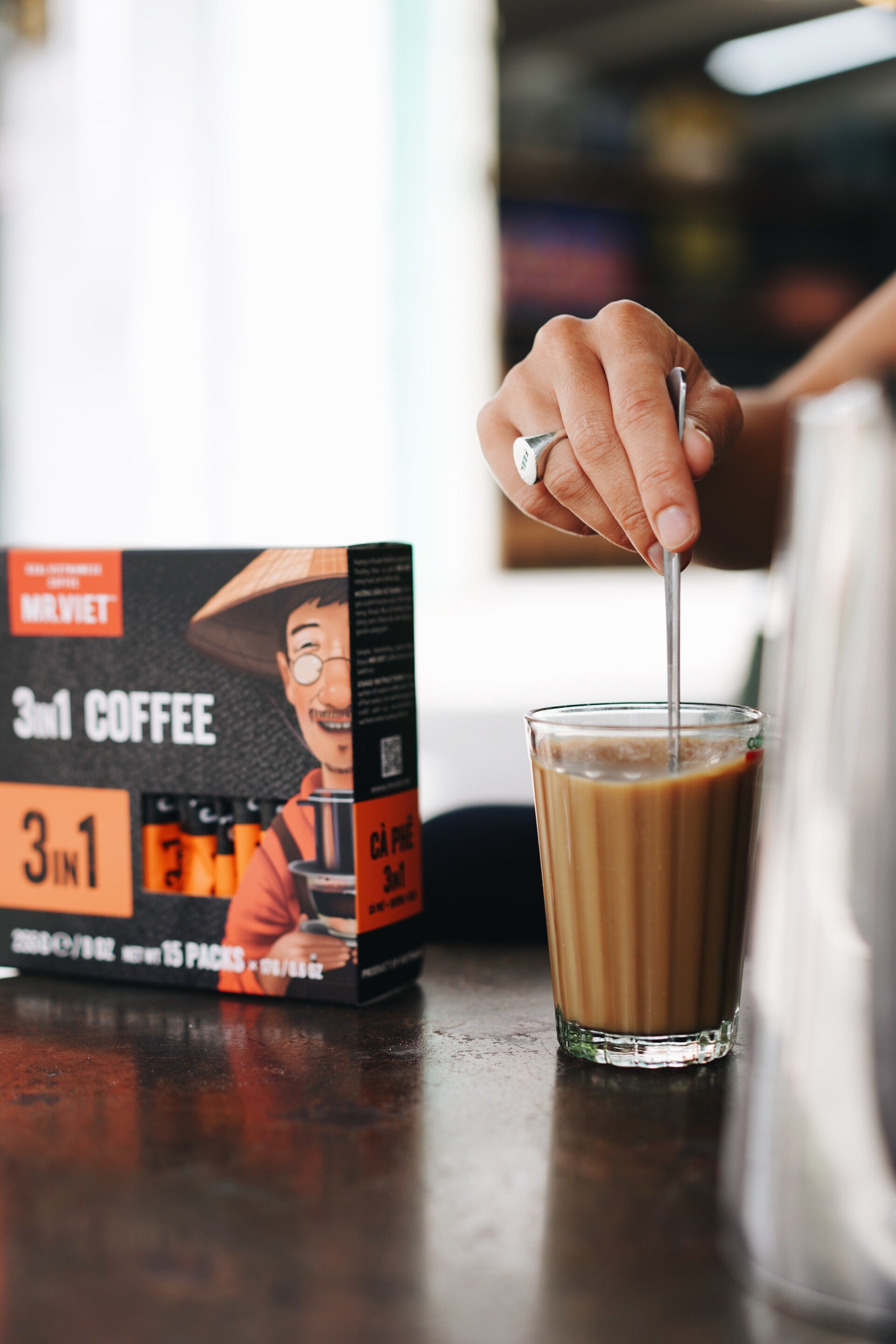 Mr.Viet 3in1 on valmis instant kahvi jossa mukana maito, sokeri ja kahvi. Täyteläinen maultaan nautittavaksi kuumana tai kylmänä jääkahvina.