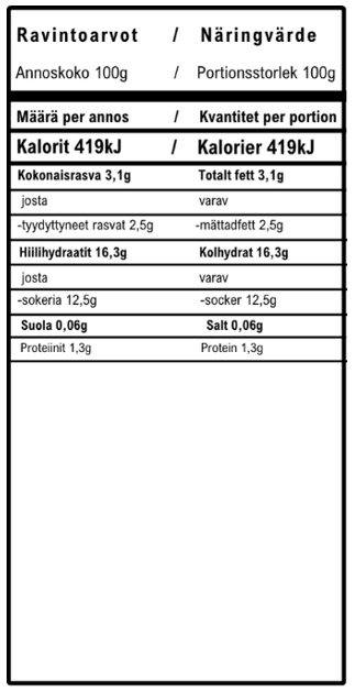Sisältää maitoa, saattaa sisältää kananmunan, pähkinän, soijan ja vehnän jäämiä.